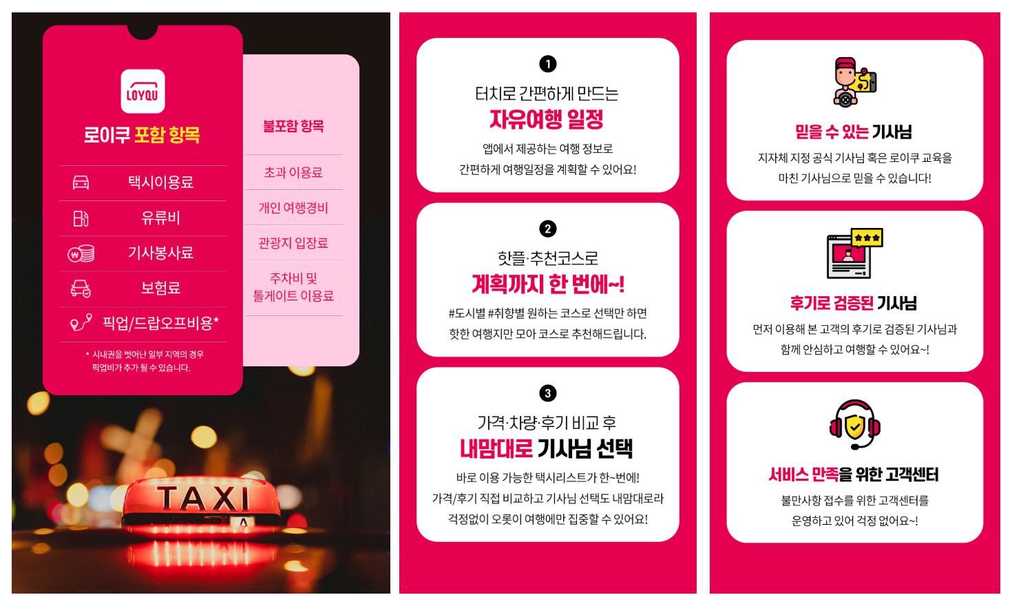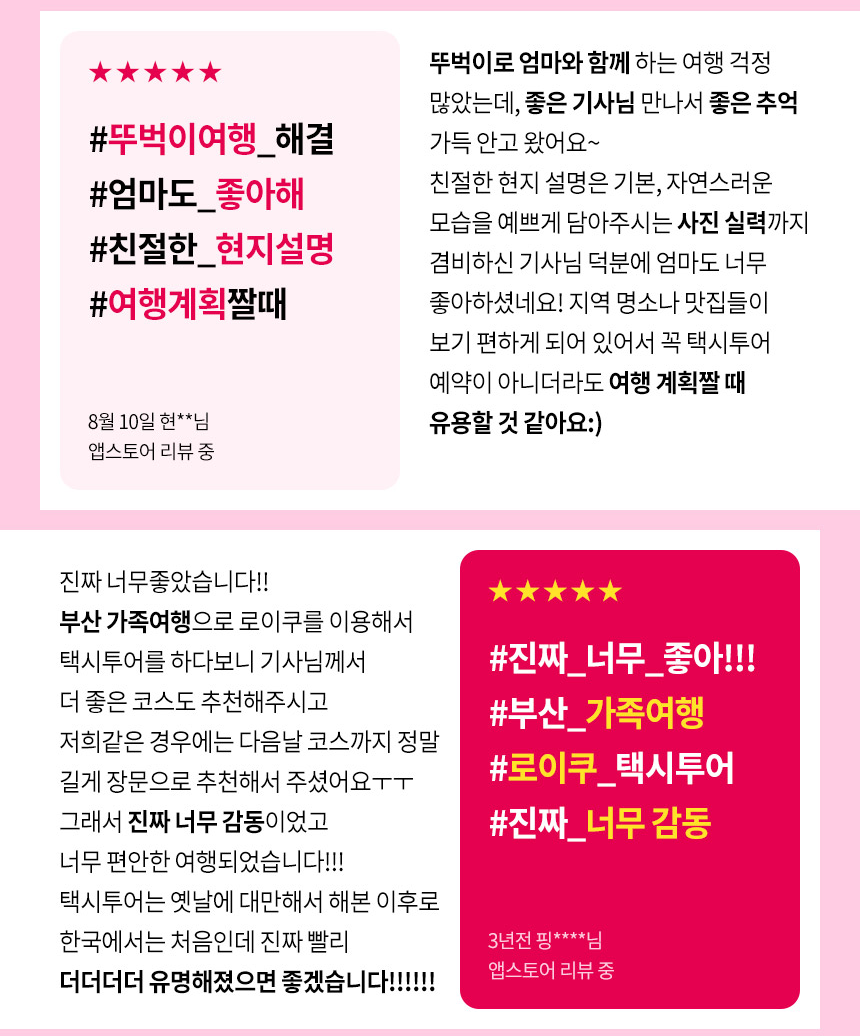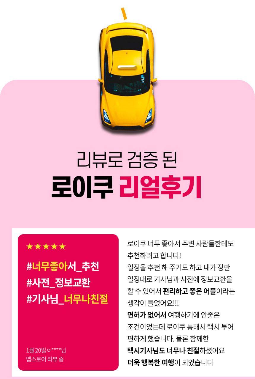 LOYQU est un service de mobilité sur mesure pour les voyageurs. Avec des chauffeurs de taxis touristiques certifiés par les collectivités locales, nous offrons un service très fiable, plus rapide et pratique que les transports publics. Grâce à nos chauffeurs expérimentés, vous recevrez des recommandations de restaurants et de lieux tendance et voyagerez sereinement sans souci de stationnement. Particulièrement utile lorsque les transports sont limités ou les sites éloignés. Du début à la fin, avec LOYQU, profitez d’un trajet sûr et confortable.